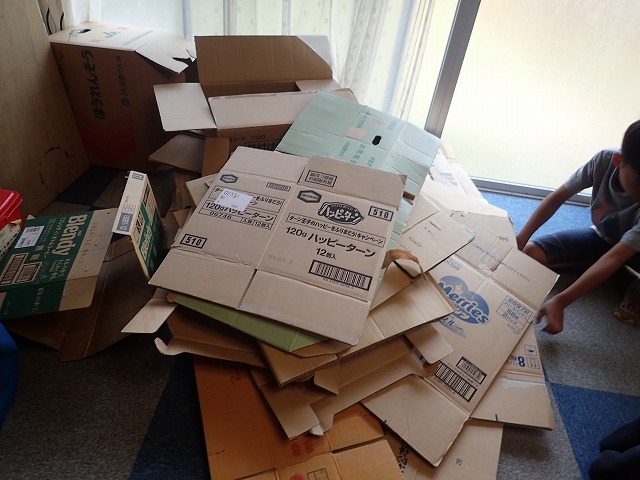 大量の段ボール!まずスーパーに段ボールを取りに行きました。