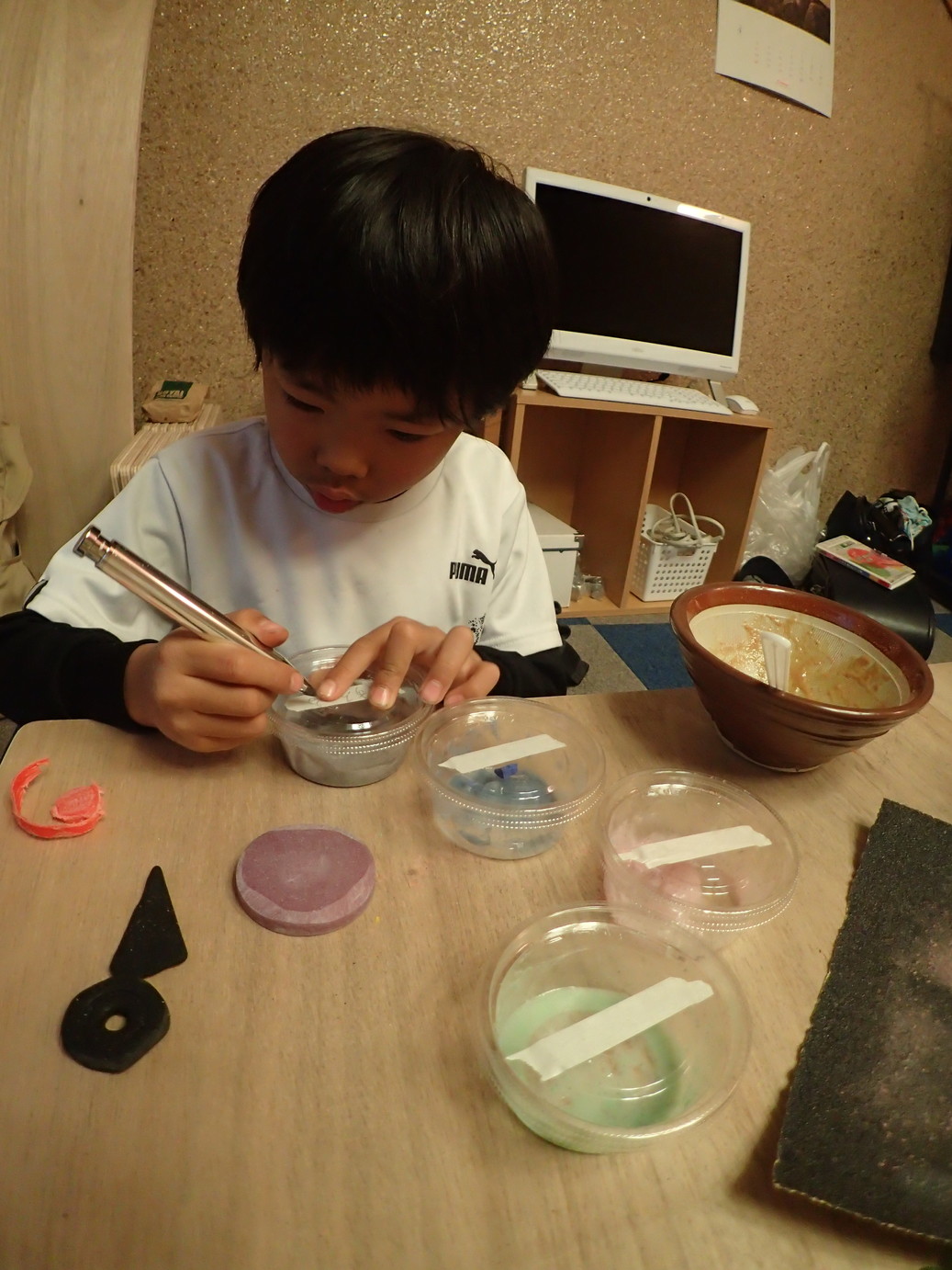 まずは海岸で拾ったプラスチックをやすりで粉にして、