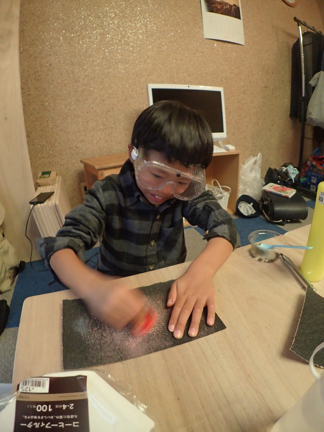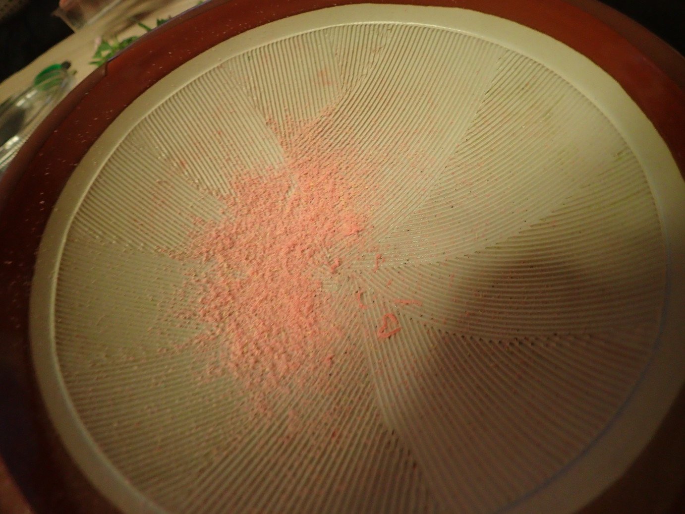 プラスチックの赤い蓋と砂と混ぜると、前回の「