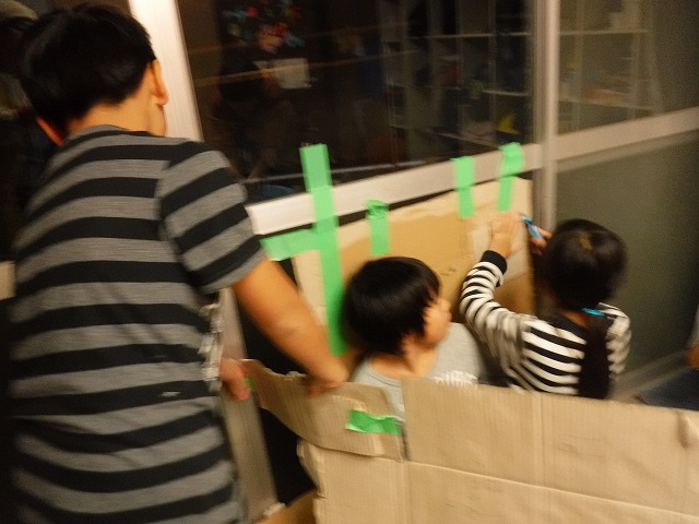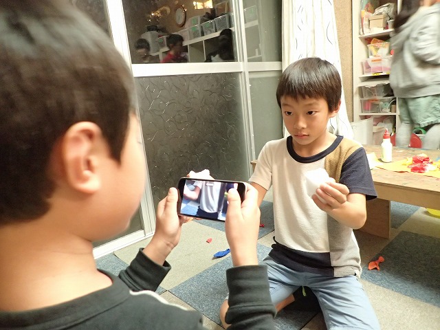 最初はダンボールに普段どんな役割があるか話し合って、それからダンボールアーティストの制作動画を見ました。どんな風にダンボールが変化させるかイメージして、まずはひたすらダンボールをちぎるちぎる。。。