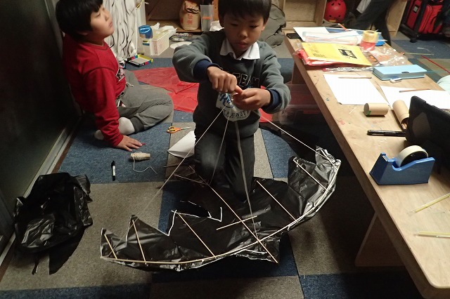 遠くまで飛ばすには形とバランスが大事です。前回までの凧と一緒ですね。