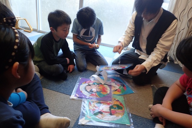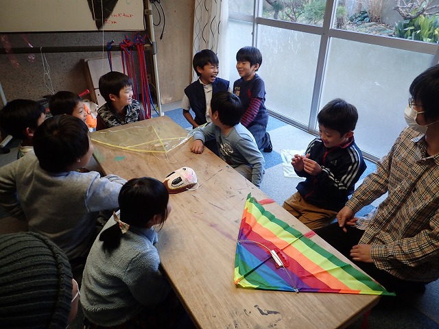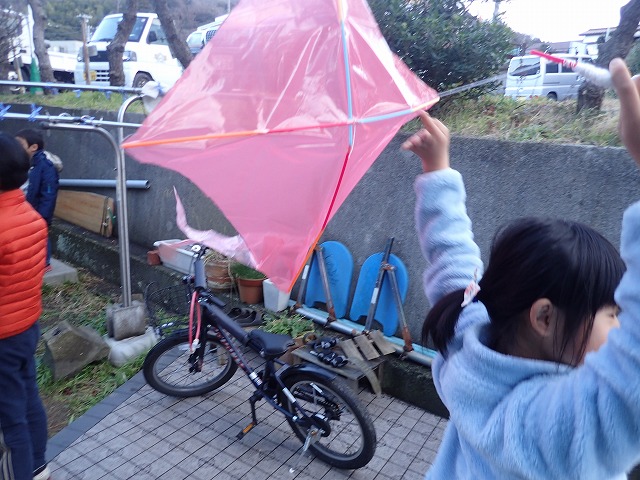 今日はとても風が強かったので、凧揚げは断念しました・・・。