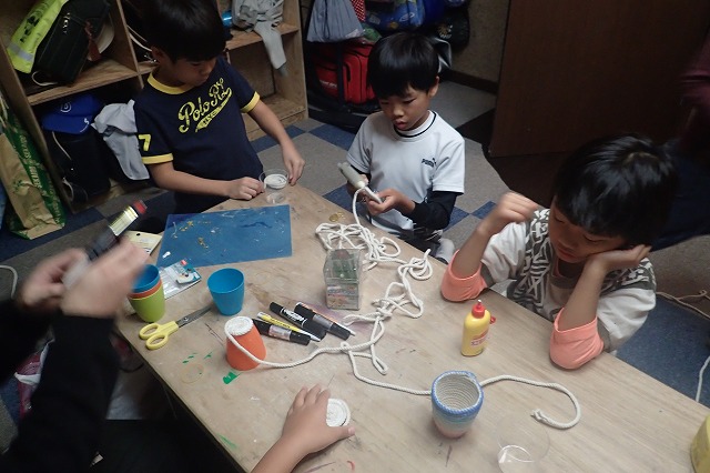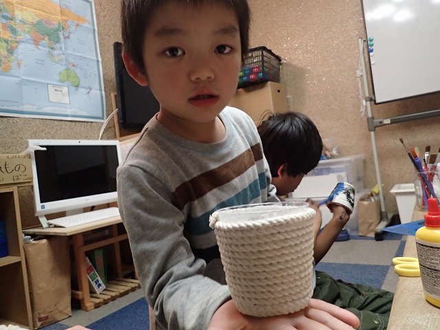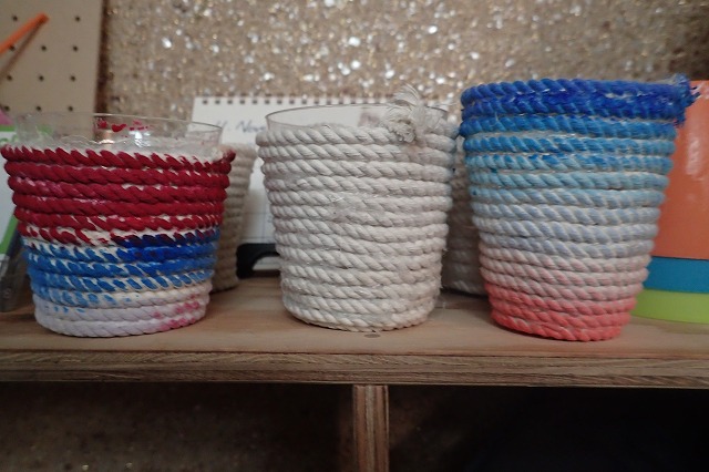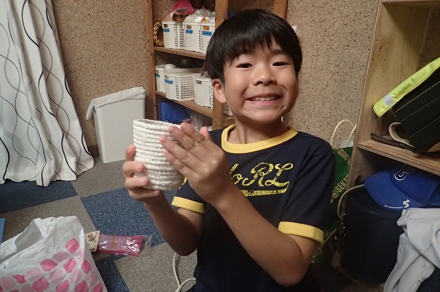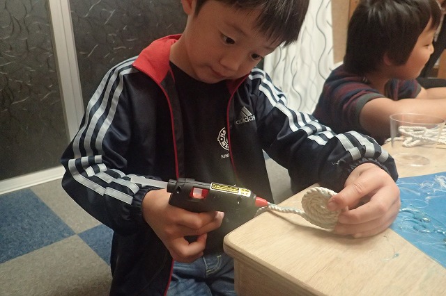 コップに沿わせてロープを巻きながらくっつけていきます。
