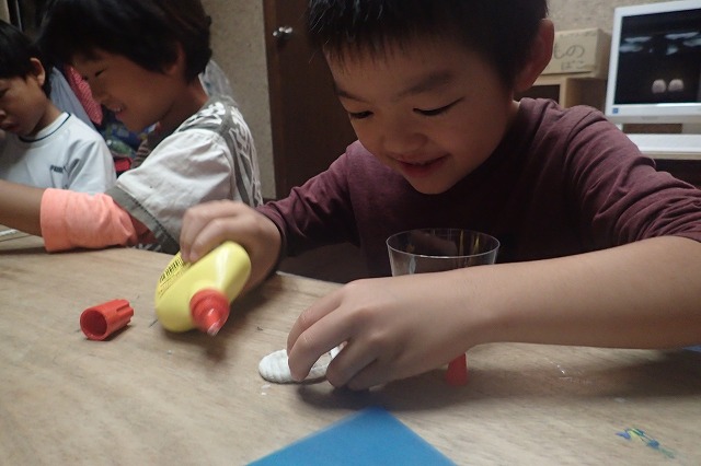 始めにコップの底の部分を作ります。グルーガンも慣れたものです。