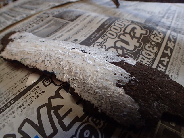 木に白色を塗ってみる。木肌の細かい形が見えてきた。