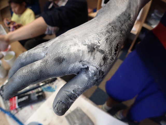 見慣れた自分の手が色を塗ると全然違う様に見えるね。