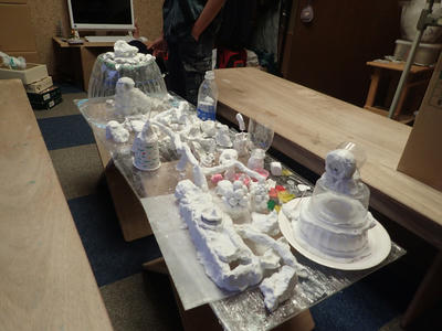光を遮らないように粘土を使いすぎずに強度を出す、重い粘土のバランス等終盤の短い時間の中で様々に工夫がされていきました。