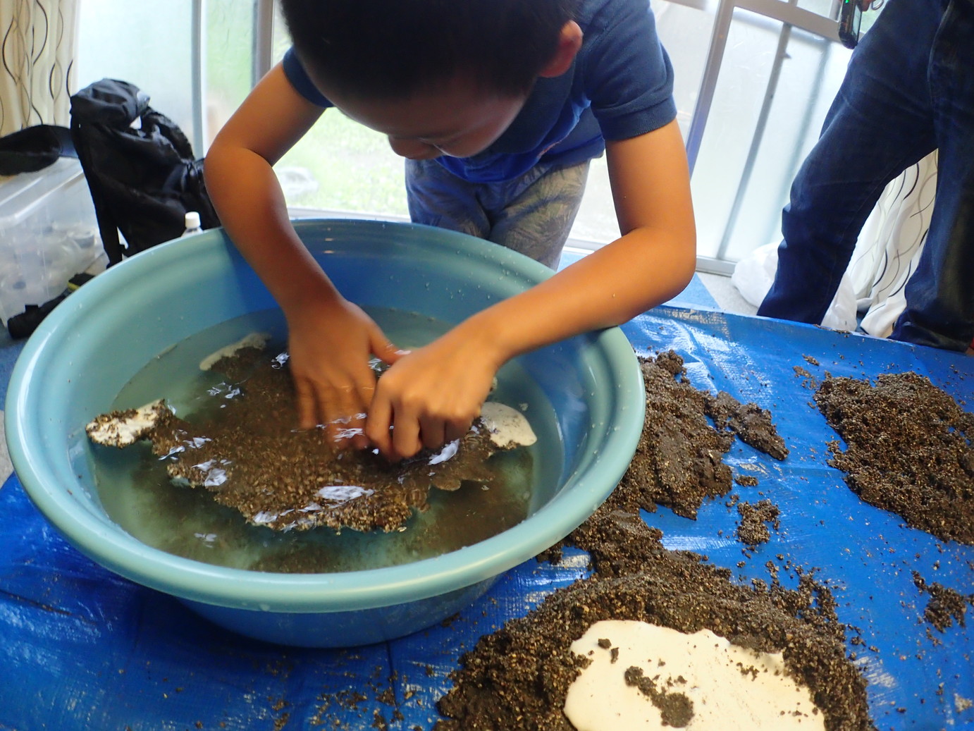 発掘をしているようなワクワク感があり、自分がつくった穴から出てきた不思議なかたちを皆さん集中して掘り出していきました。