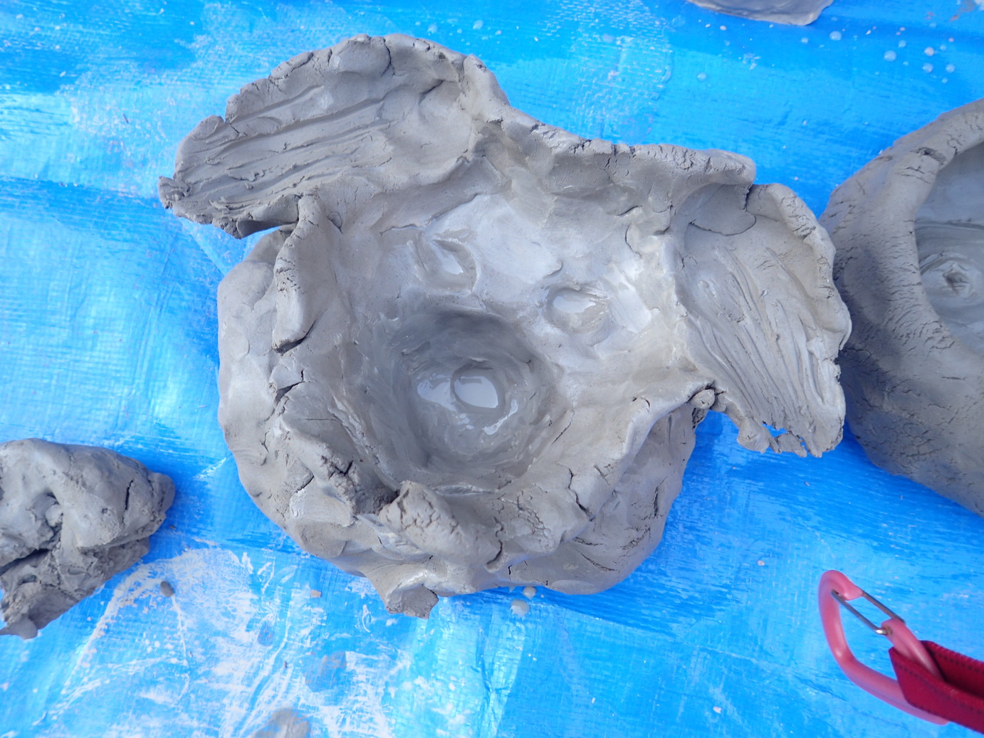 それぞれイメージするものがあるようですが、お互いにお話しながら手を入れていき”深い穴とつながったスロープ”で折り合いがついたところで石膏を流してみると、、