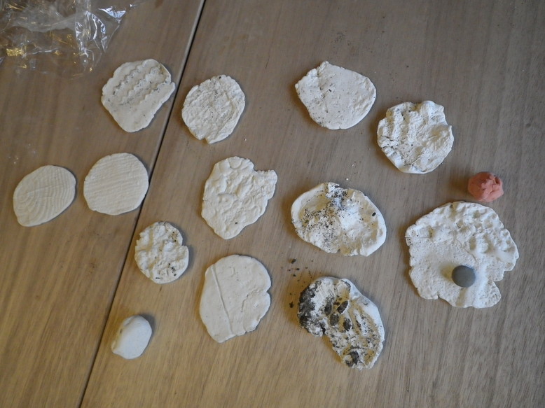 紙粘土を葉っぱに押し付けてみると
