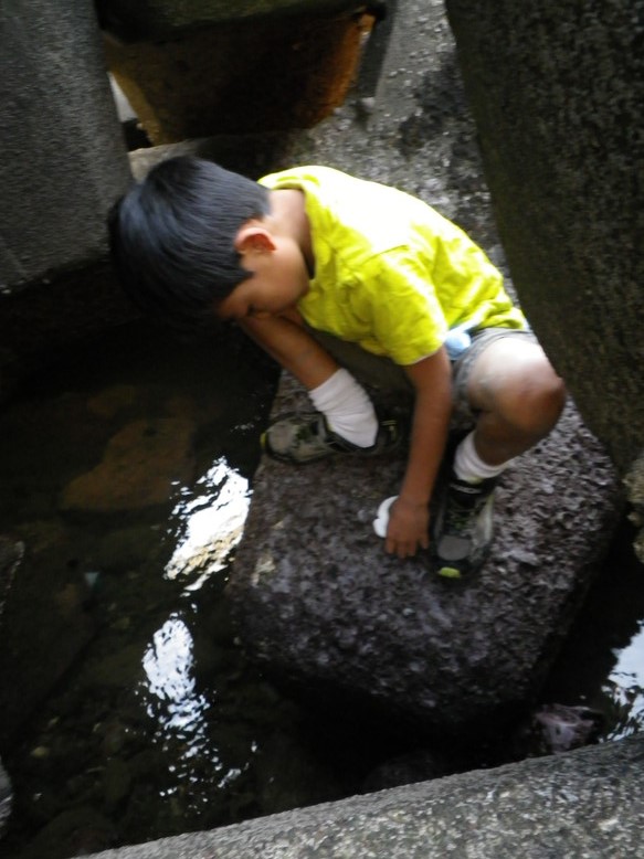 貝が開けた石の穴からは、柔らかな丸いかたちが取れました。